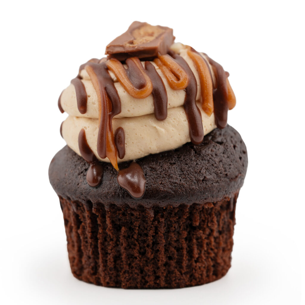 A rich chocolate cupcake filled with creamy peanut butter, topped with smooth peanut butter frosting and  chocolate. Made for peanut butter lovers.