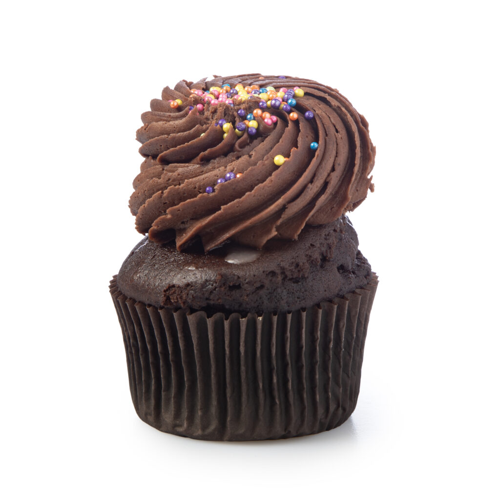 Made with moist chocolate cake and topped with a smooth, decadent chocolate buttercream and rainbow sprinkles. Perfect for chocolate lovers.